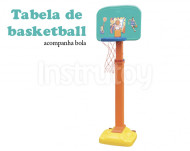 Tabela de Basket confeccionada em resina plástica de polietileno. Em cores diversificadas com 07 regulagens de altura, e com opção de enchimento da base com água ou areia para maior maior estabilidade, acompanha uma bola e as traves possuem rodas para fácil locomoção.