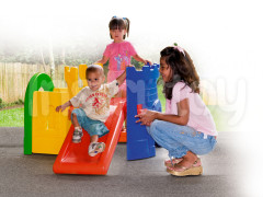 Mini playground confeccionado em resina plástica de polietileno, multicolorido de rotomoldado, em formato de castelo.Com plataforma superior interna e escorregador pequeno.Túnel na parte inferior e paredes com desenhos de tijolos, torres e janelas.